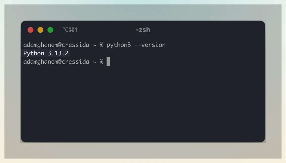 If you see a version number (like "Python 3.13.2"), you're good to go. If not, download and install Python from python.org. During installation, make sure to check "Add Python to PATH."